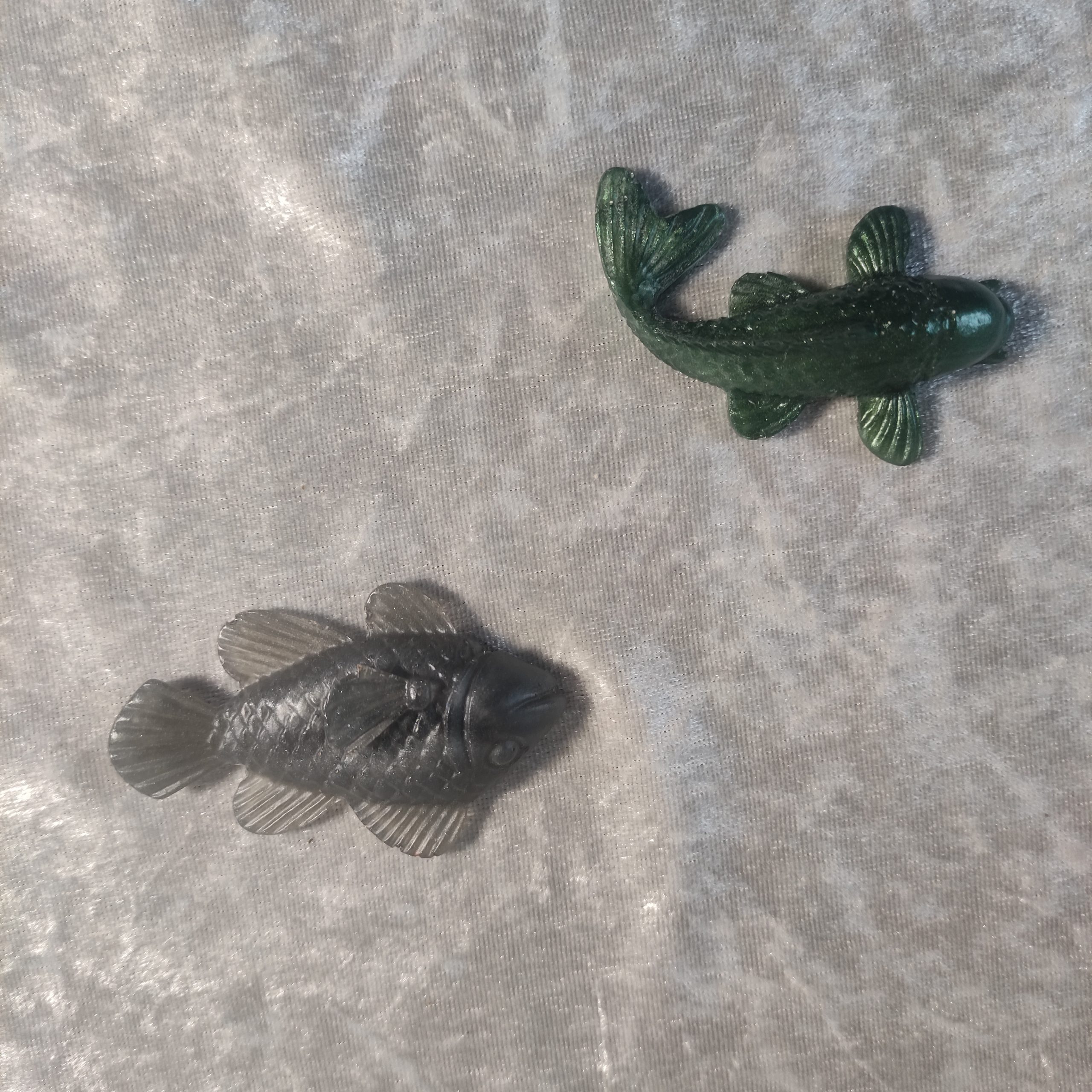 La Carpe Koï mesure 4,5 cm par 5,5cm (épaisseur 2cm). La Carpe Européenne mesure 4cm par 6,5cm (faible épaisseur).