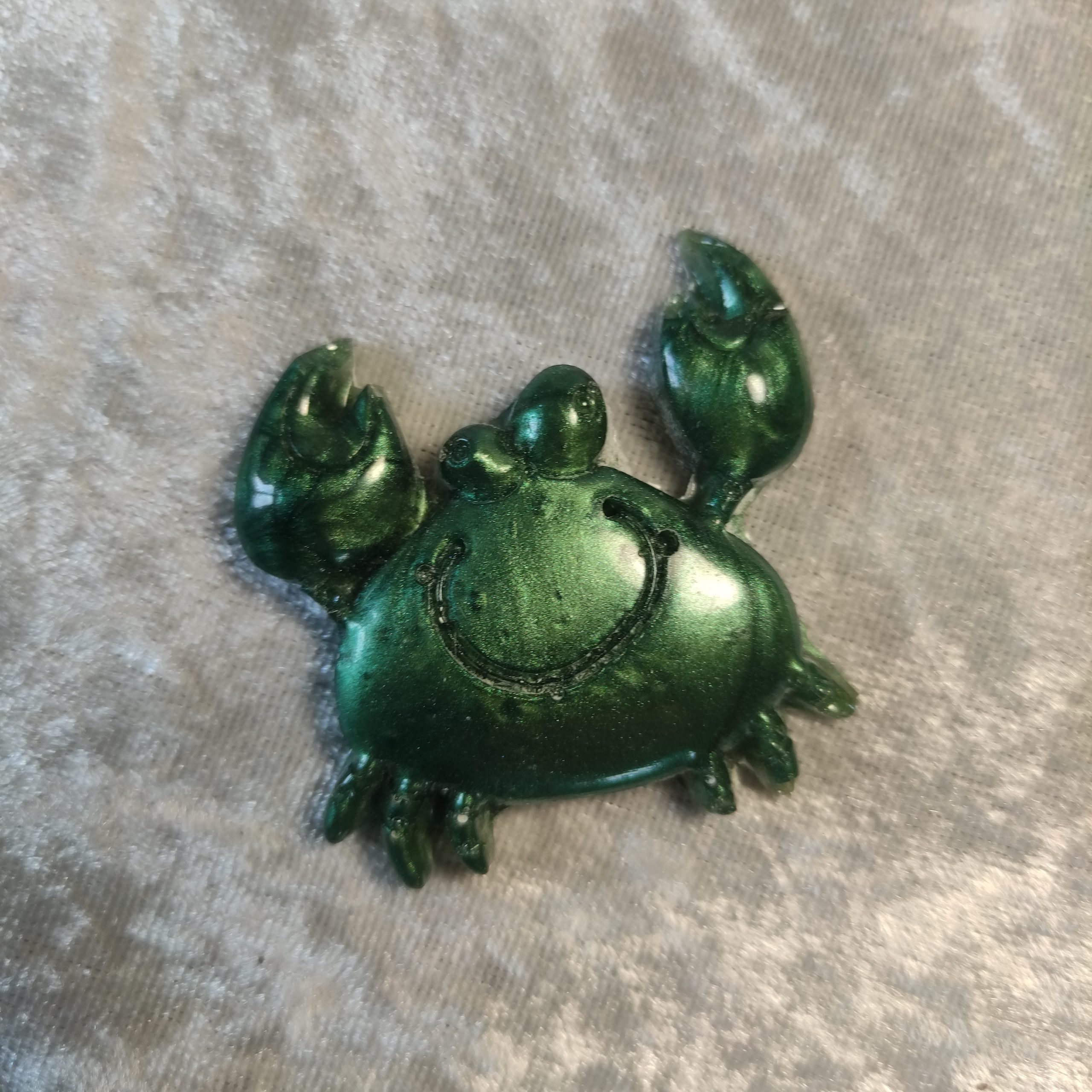 En résine époxy, ce petit crabe malicieux restera sagement chez vous ou vous suivra partout en porte-clés (à préciser à la commande).