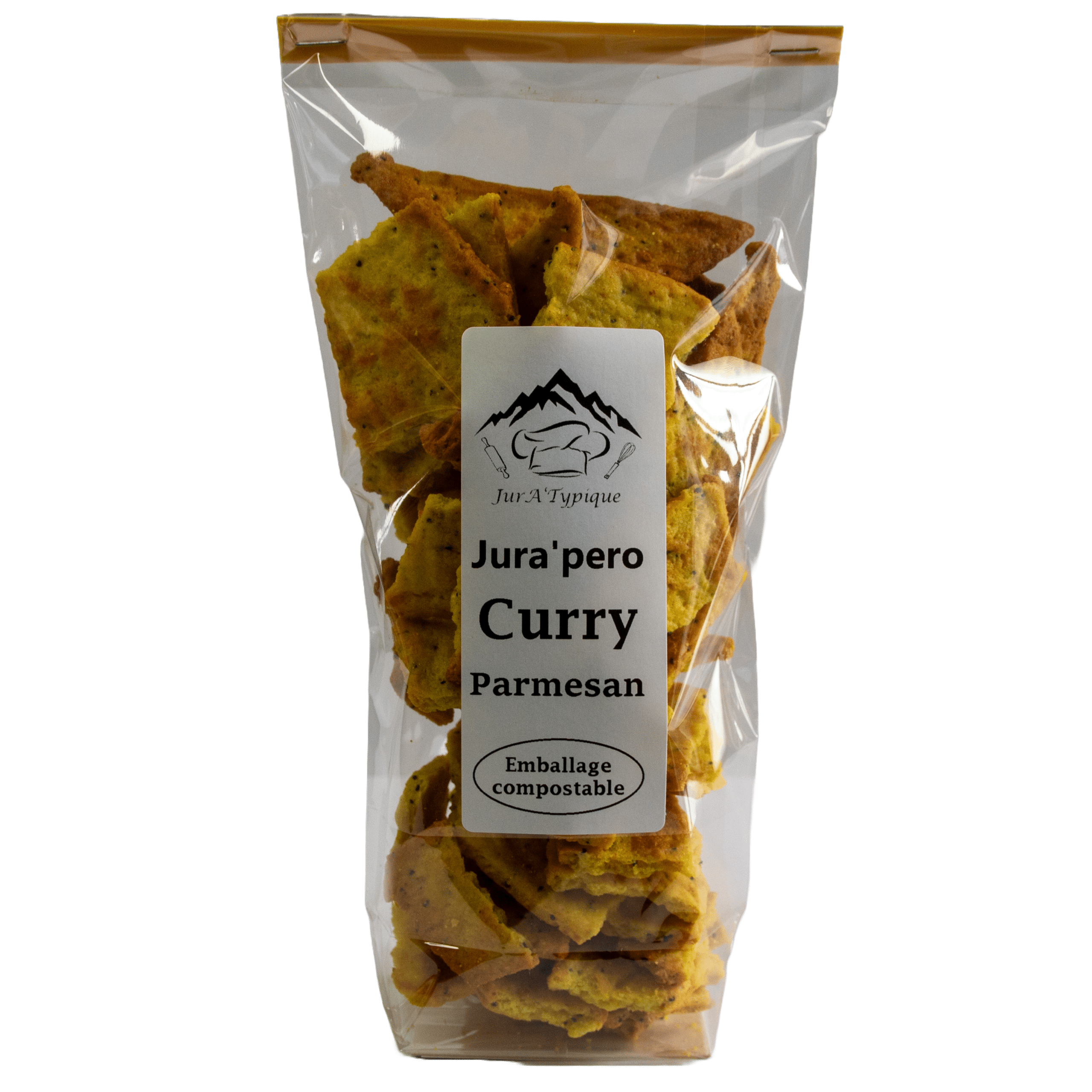 Ingrédients: Farine, Lait de vache, Parmesan, Huile D’olive, Curry, Pavot ,Sel, Gingembre, Poivre, Bicarbonate de sodium.