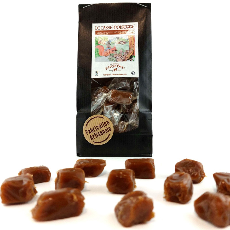 ce caramel est fabriqué de façon artisanal a Salins les bains, a partir de produit locaux comme le beurre de Nozeroy, sel de Salins les bains et farine de noix-noisette de l’arbre a l’huile de Lons le Sauniers