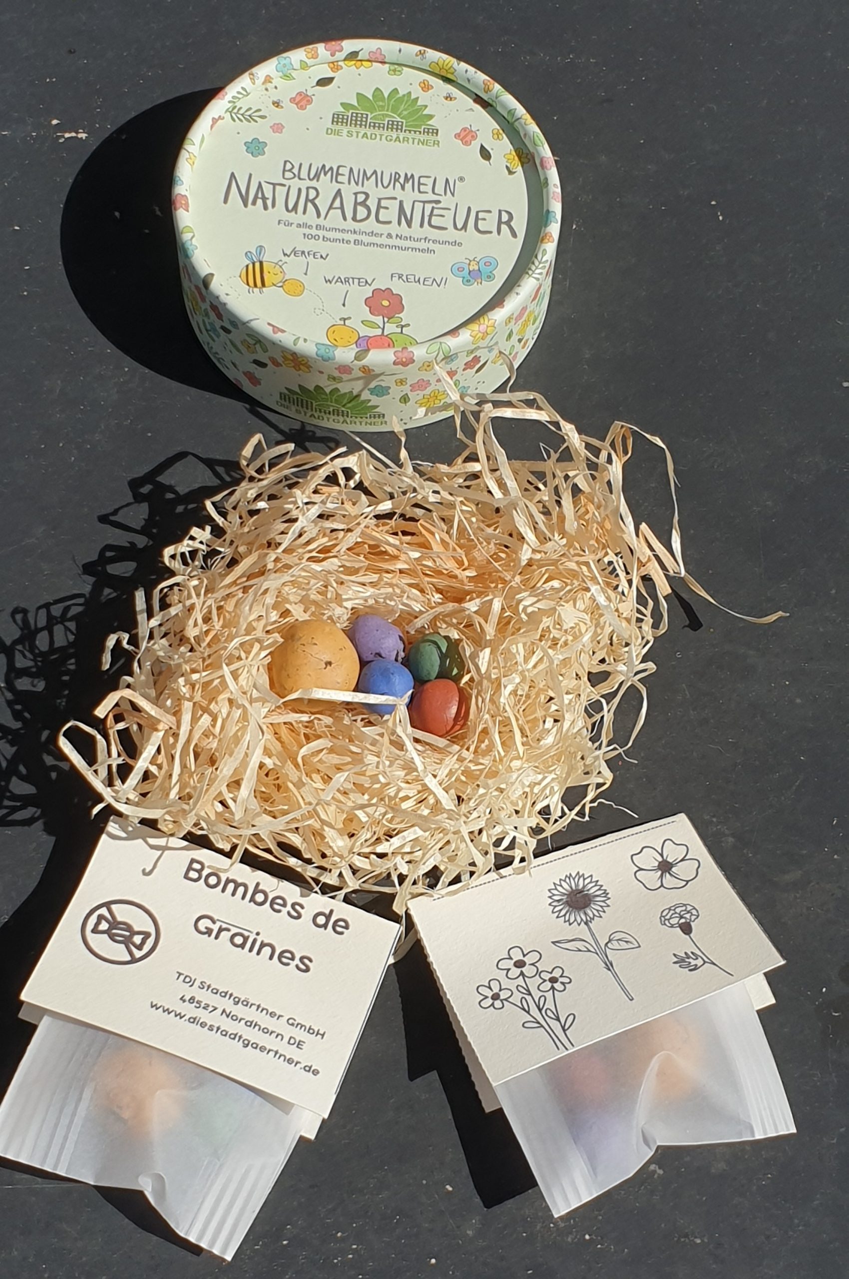 Bombes de graines : A semer à la volée, les billes fleuries embellissent les jardins et les espaces verts avec des fleurs sauvages colorées et favorisent la biodiversité. Colorées à la main par des adultes allemands en situation de handicap. Ne pas laisser à la portée des enfants.