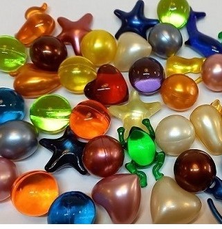 Billes de bain : à l’huile de soja et glycérine végétale. Parfum aléatoire : coco, abricot, pomme, rose, vanille. Conditionné par Soap and the City, Paris.