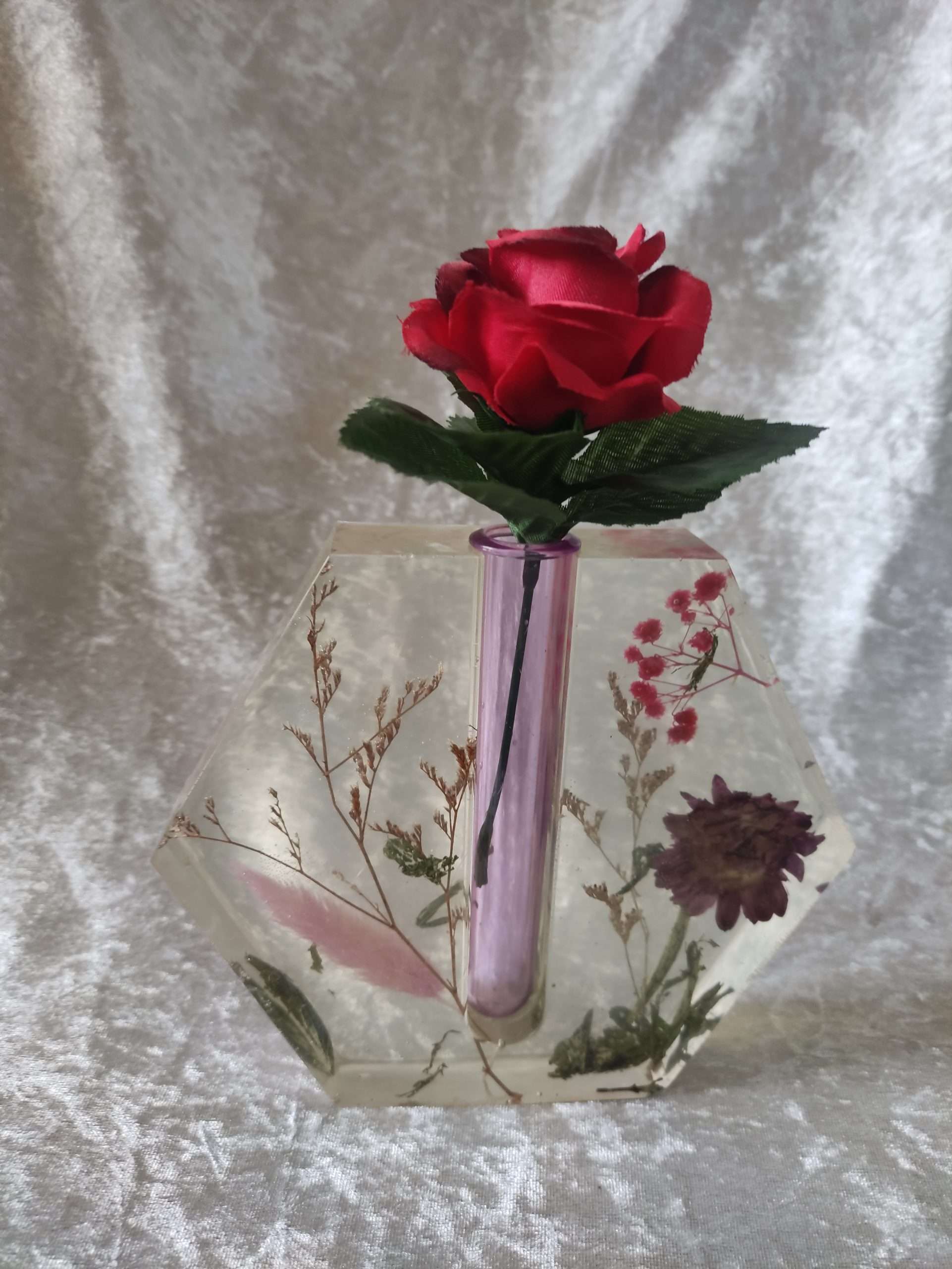 Vase soliflore avec tube à essai pour recevoir l’eau.